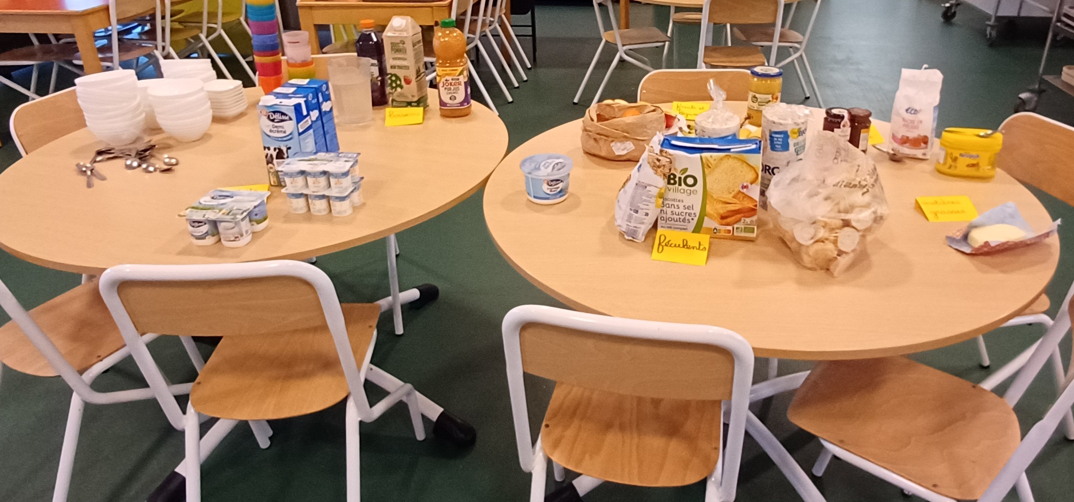 Aujourd’hui, les CE2 ont terminé la partie sur les aliments dans la joie en prenant un petit déjeuner équilibré à l’école.